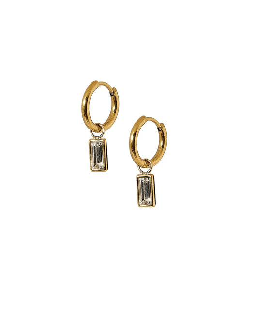 Linny Co. - Edith Huggie Charm Earrings - Clear/Gold