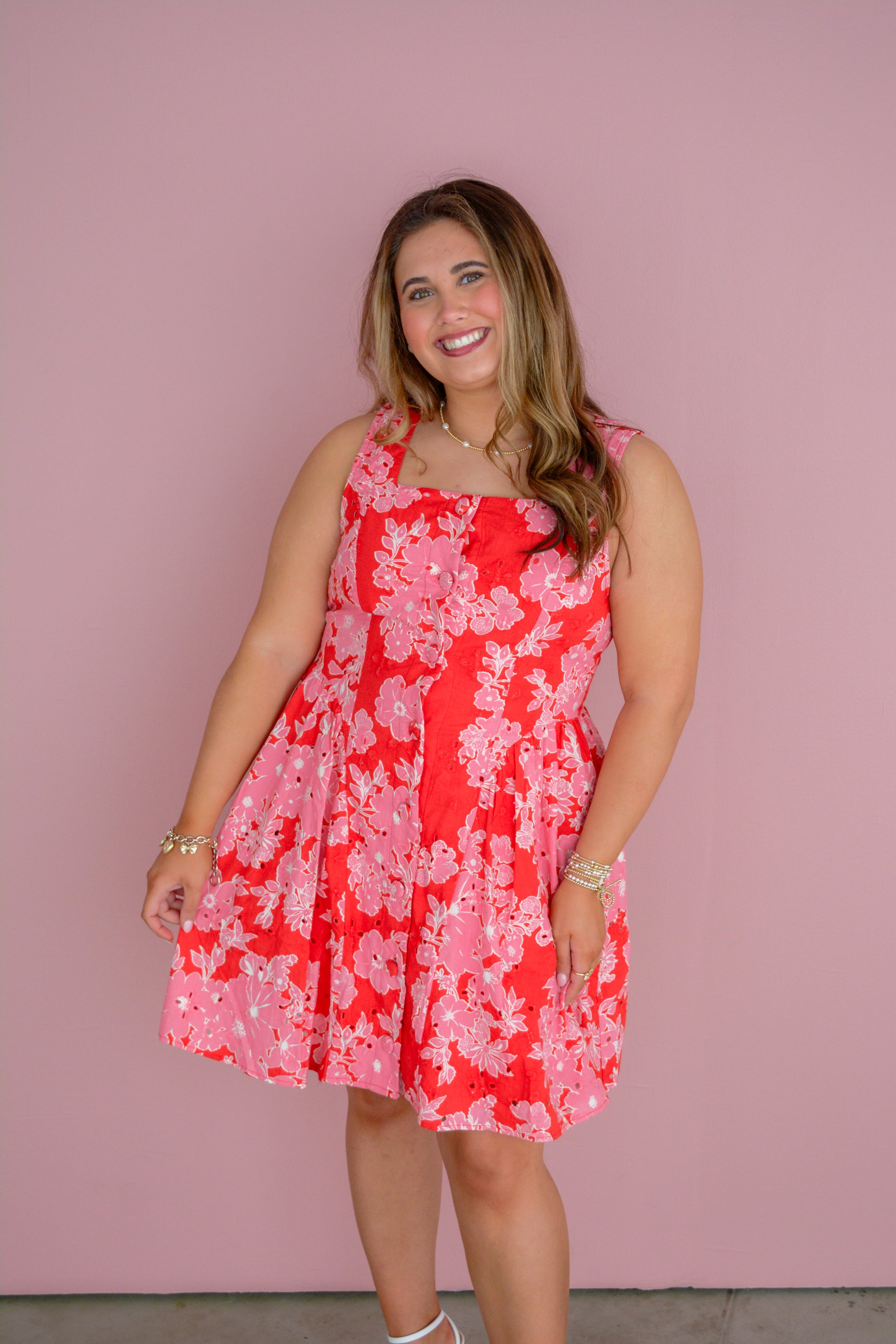 Step into spring with the Blushing Bloom Pink and Red Floral Dress, a fresh and feminine piece perfect for warm-weather days. Designed with a flattering square neckline and sleeveless silhouette, this dress highlights your natural shape while keeping you cool and comfortable.
