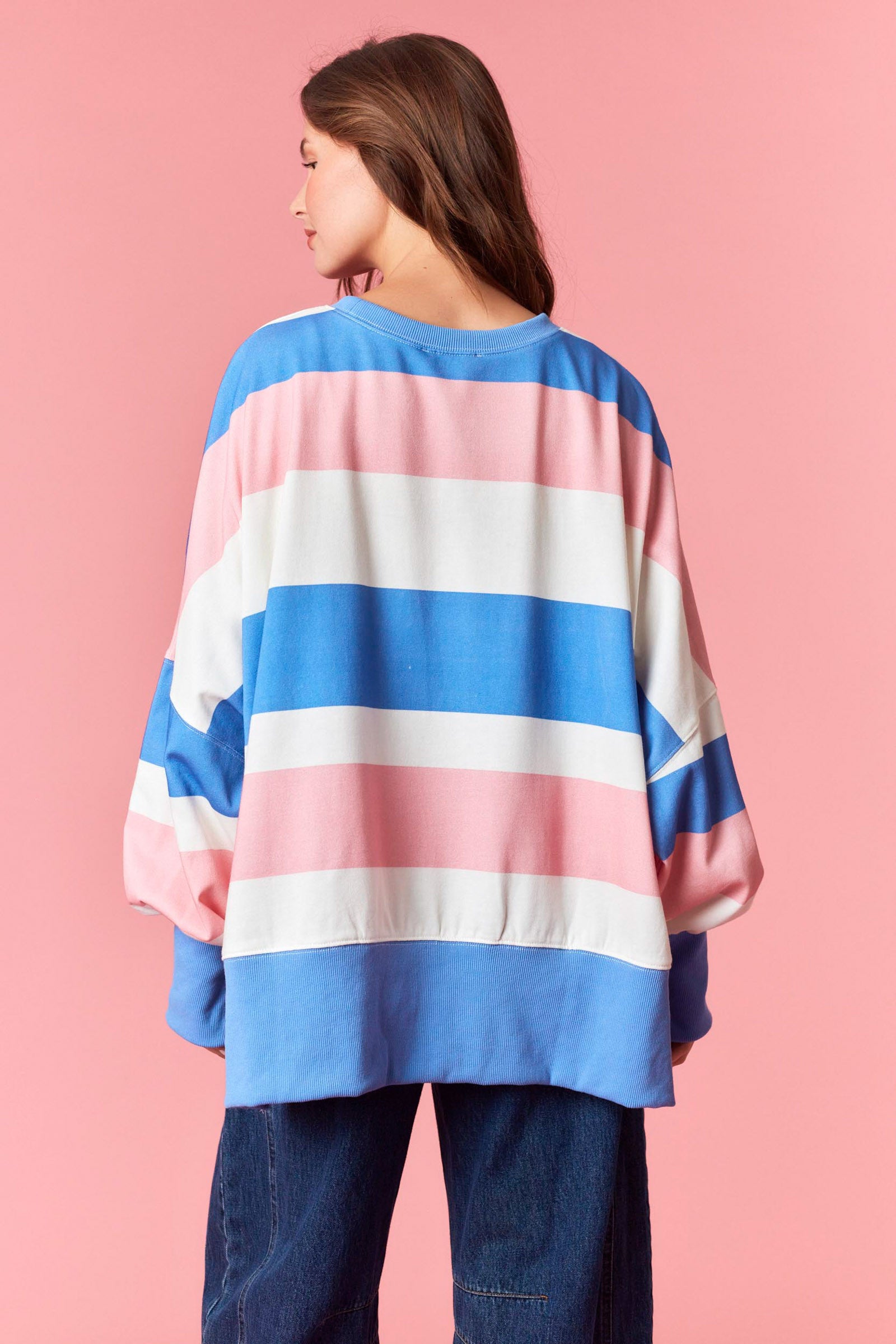 Add a pop of playful color to your wardrobe with our Multi-Colored Striped French Terry Oversized Long Sleeve Top — the perfect blend of comfort, personality, and boutique-chic style. Designed in a soft, premium French terry knit, this top brings all the cozy vibes while staying lightweight enough for spring layering and everyday wear.