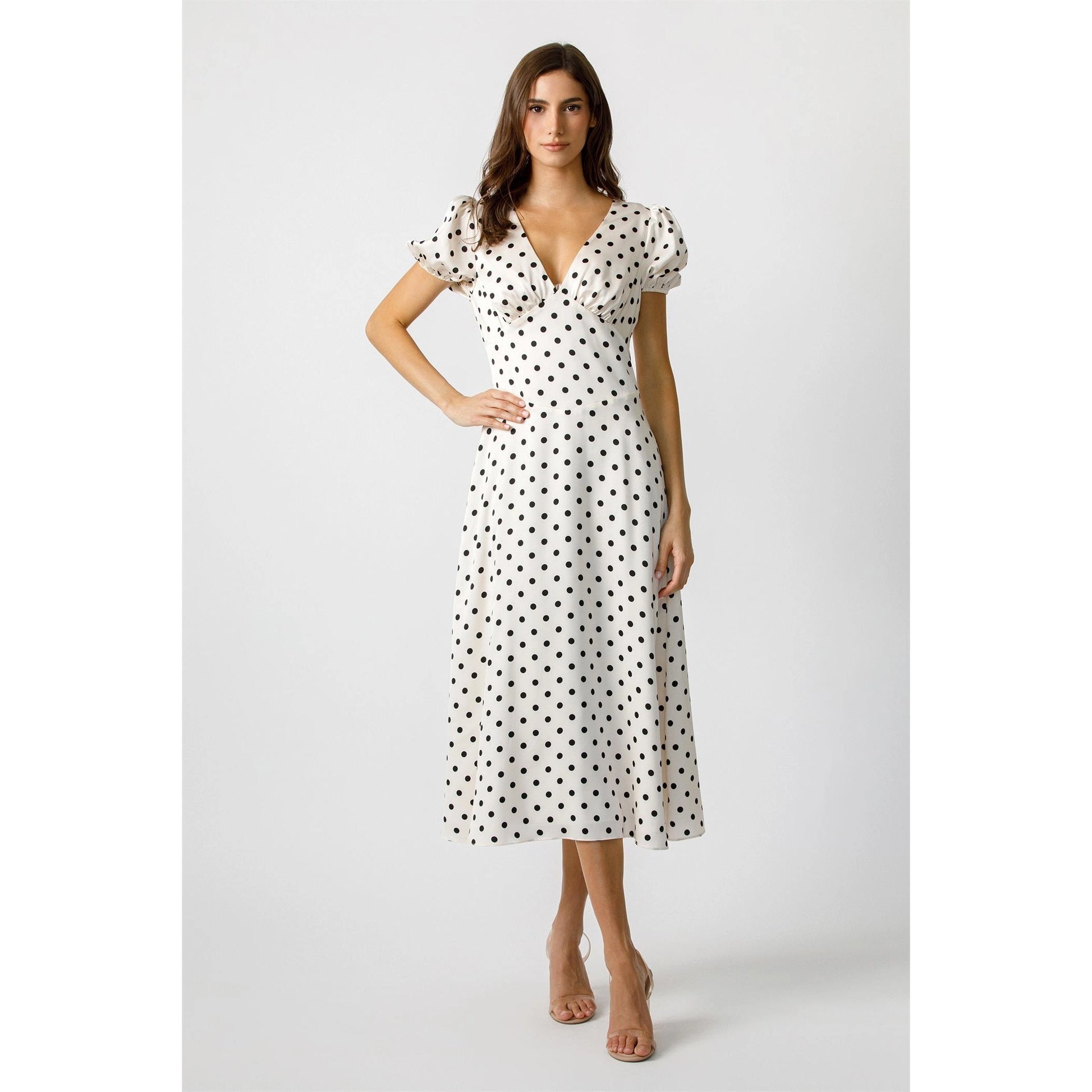 Step into timeless elegance with our black and white polka dot midi dress, designed for every season and occasion. Featuring a chic V-neckline, short puff sleeves, and a flattering A-line silhouette, this dress brings vintage charm with a modern twist. Perfect for fall events, cocktail parties, or even as a unique bridal or rehearsal dinner look, it’s a versatile statement piece you’ll wear again and again. Pair with heels for a special occasion or boots and a jacket for fall sophistication. Shop Torque Fashion Boutique for classic dresses that turn heads in Lubbock