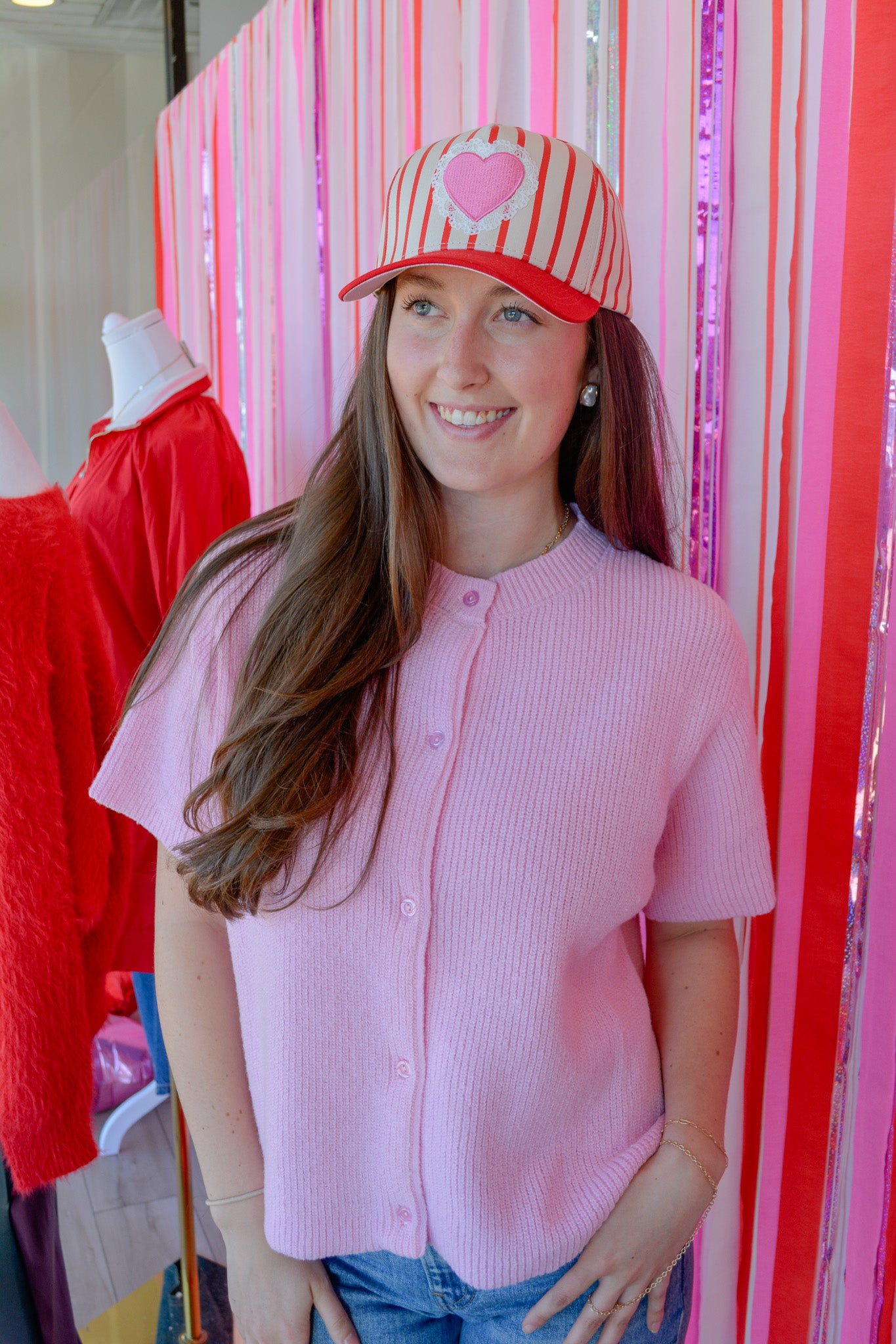 The soft knit fabric makes it ideal for spring styling, while the cardigan design allows you to wear it buttoned up as a top or open over tanks and dresses. From Valentine’s Day outfits to graduation celebrations and everyday errands, this piece delivers endless versatility with boutique-worthy charm.
