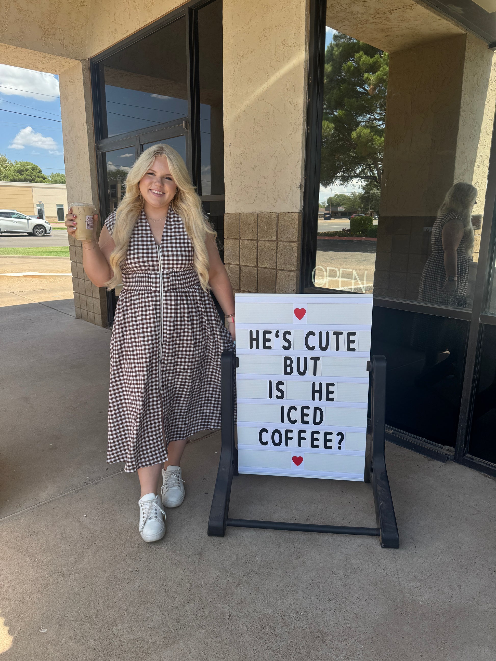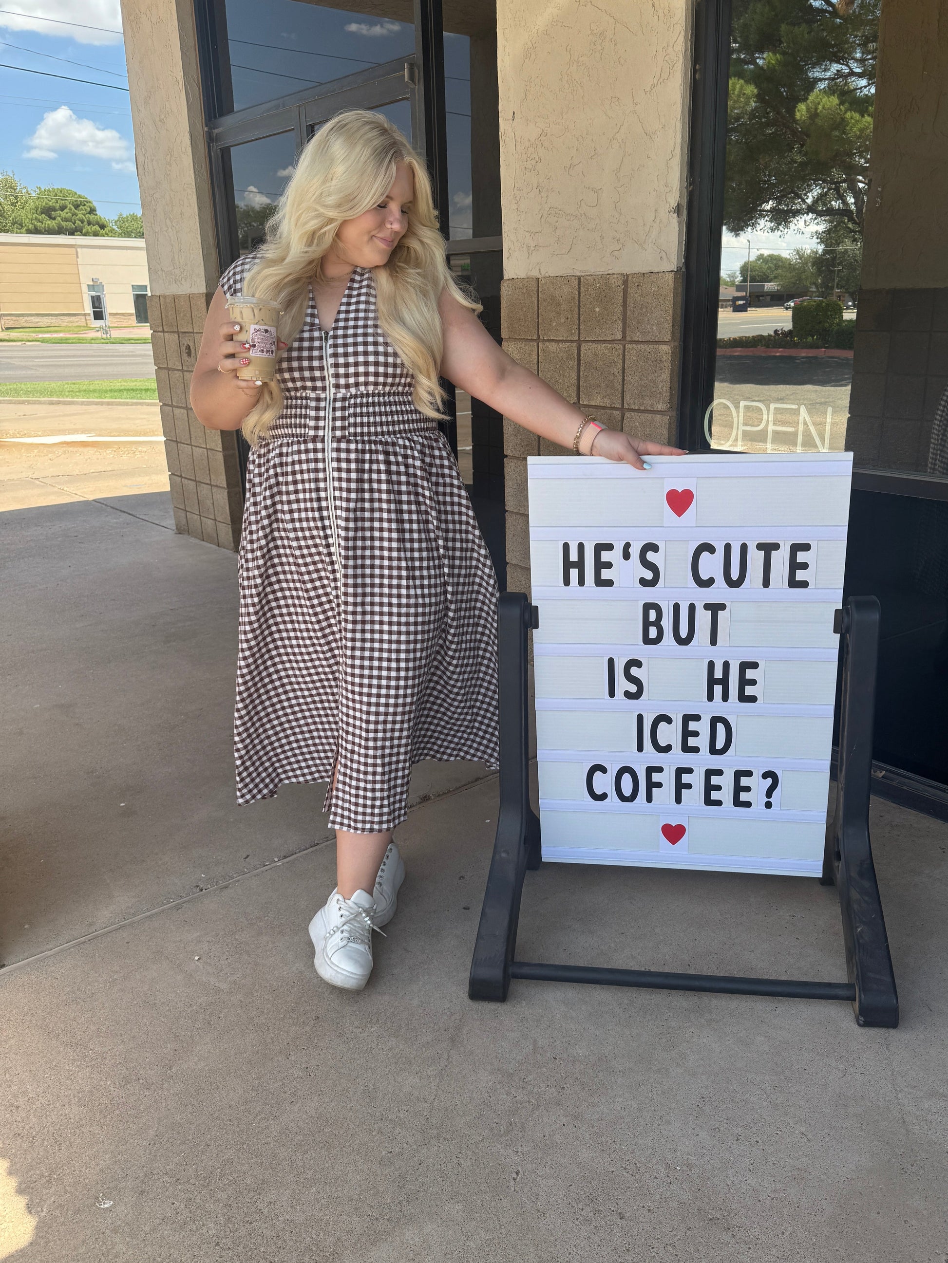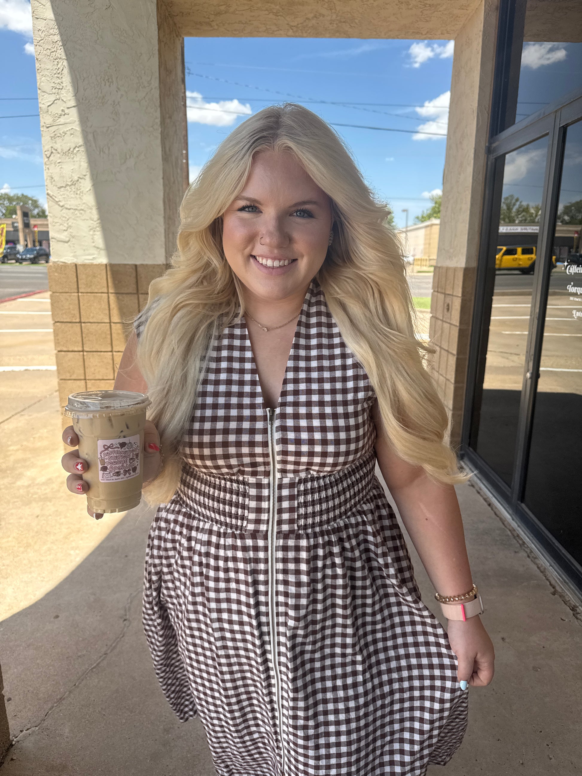 Fall in love with timeless charm 🍂 This gingham-patterned V-neck midi dress is the perfect transitional piece for pumpkin patch days and cozy café dates. Featuring a flattering smocked waist and functional front zipper, it combines comfort with effortless style. The sleeveless cut makes it ideal for layering under cardigans or denim jackets. Bonus: it has pockets (yes, really)!