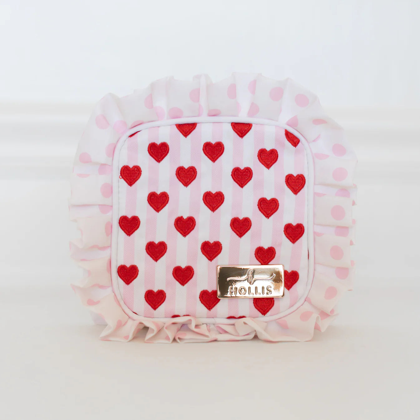 Meet our Cupid’s Collection Tech Pouch - a LIMITED EDITION style designed exclusively for Valentine’s Day. This compact pouch is perfect for keeping your tech essentials organized, featuring signature ruffle details and embroidered red hearts for a fun, elevated touch.