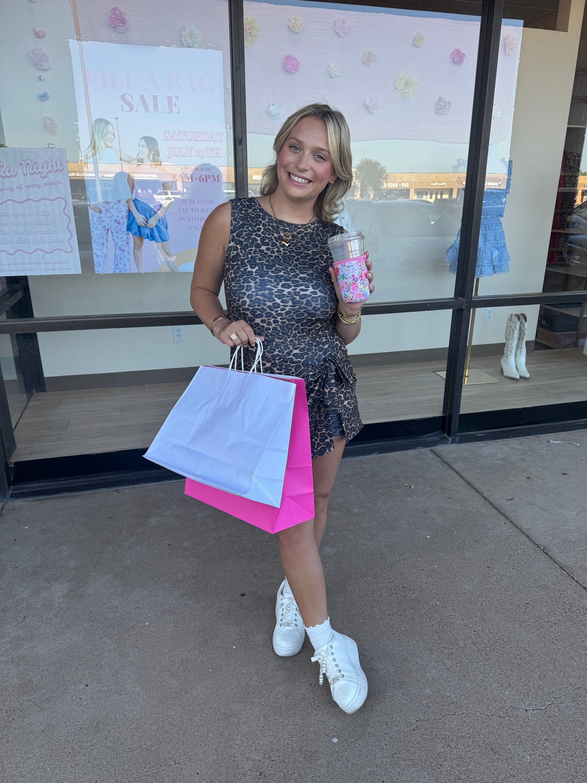 Made with a soft yet sculpting nylon-spandex blend, it’s ideal for hot summer gamedays, fall transition outfits, and everything in between. The sleeveless cut and lightweight material keep you feeling fresh, while the leopard print adds just the right amount of edge.