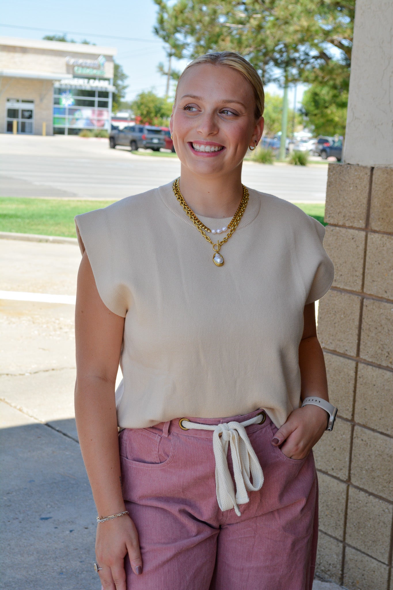Effortlessly cool with a touch of edge 💥 This solid sweater-knit muscle tee combines comfort and structure in one flattering silhouette. Featuring a classic crew neckline and subtle shoulder emphasis, this lightweight knit is your go-to for layering or wearing solo on breezy days. Unlined and non-sheer, it’s the perfect elevated basic to take you from season to season.