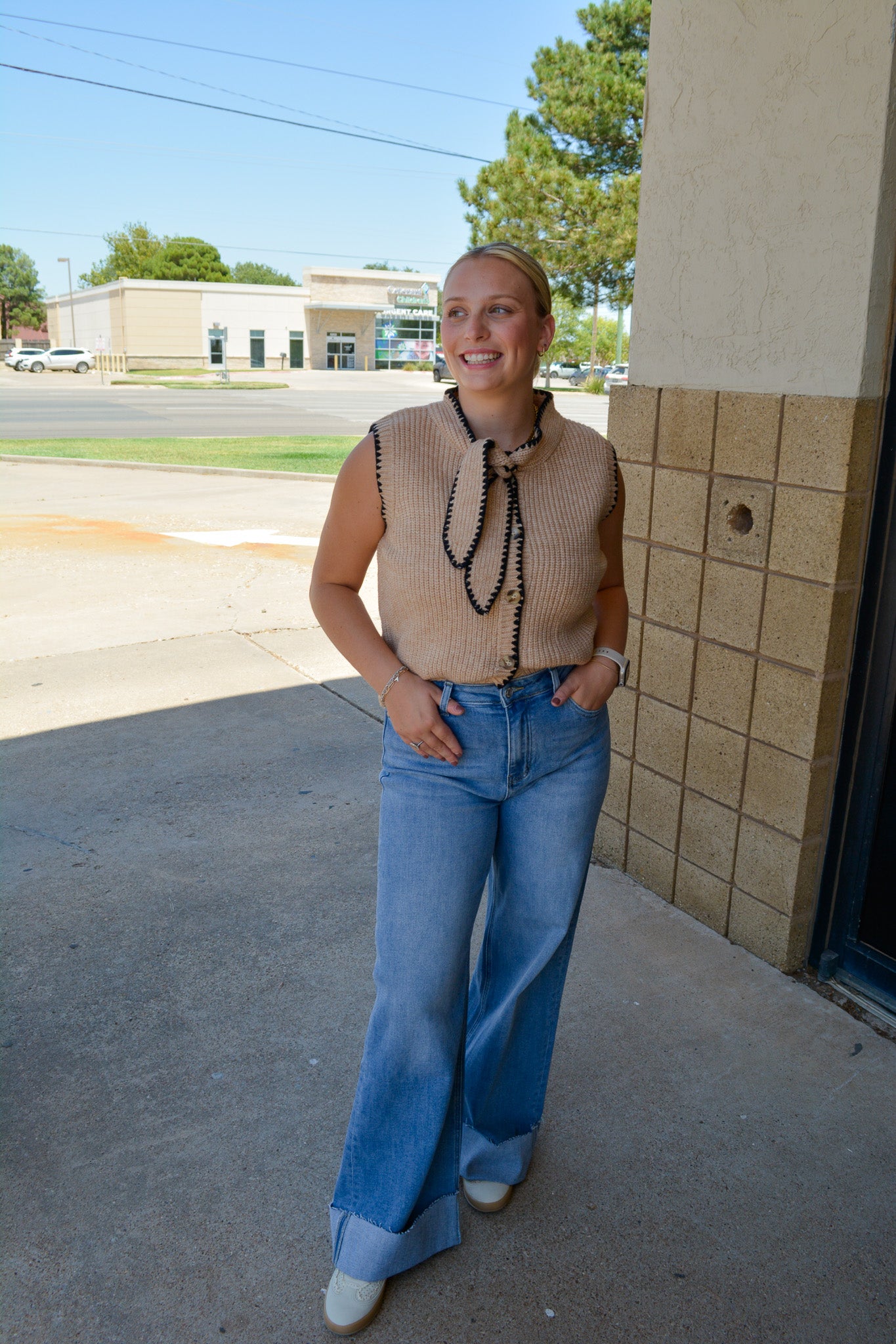 Cuffed hem detail adds a touch of casual polish