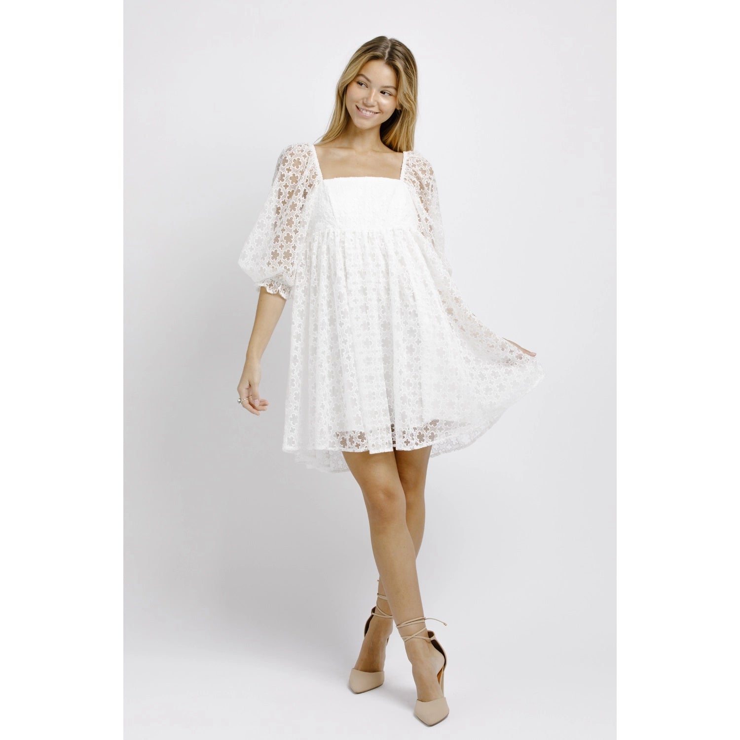 Monochromatic daisy cut-out eyelet baby doll mini dress.