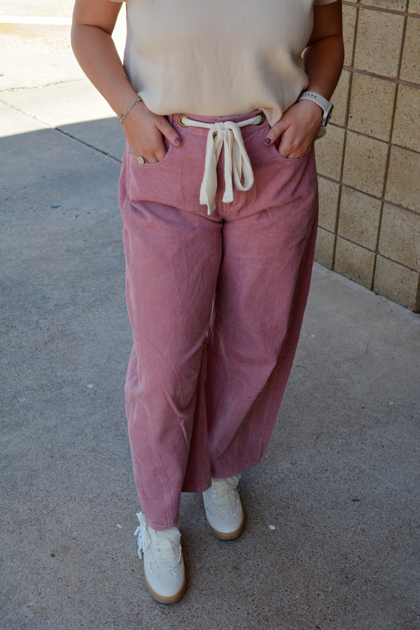 corduroy barrel jeans fall 2025, mauve belted pants boutique, trendy fall bottoms, eyelet belt corduroy, Lubbock fall outfit, corduroy pants for women, cozy cute boutique pants
