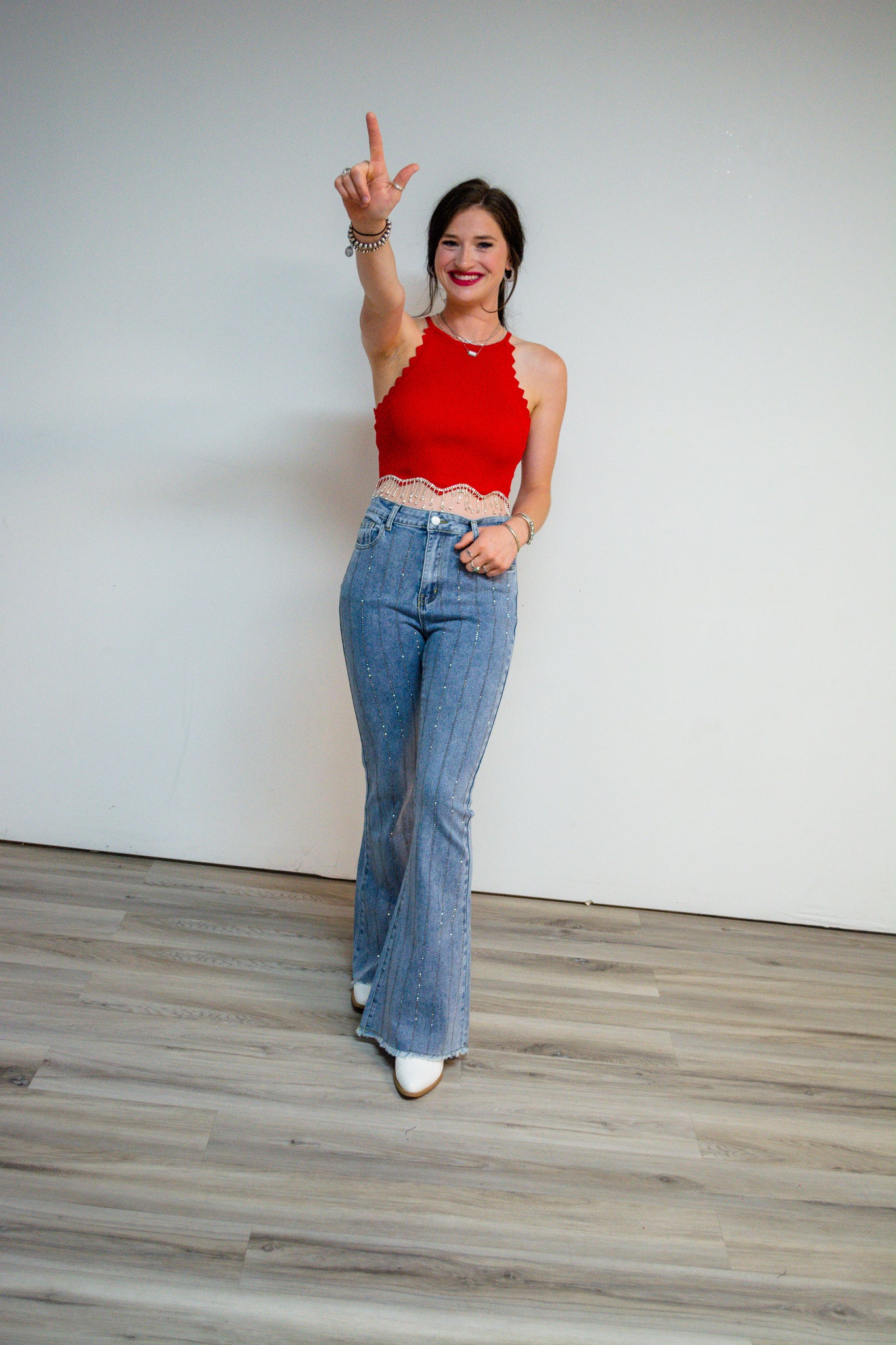 Rhinestone Raindrop Stripe Bell Bottom Jeans