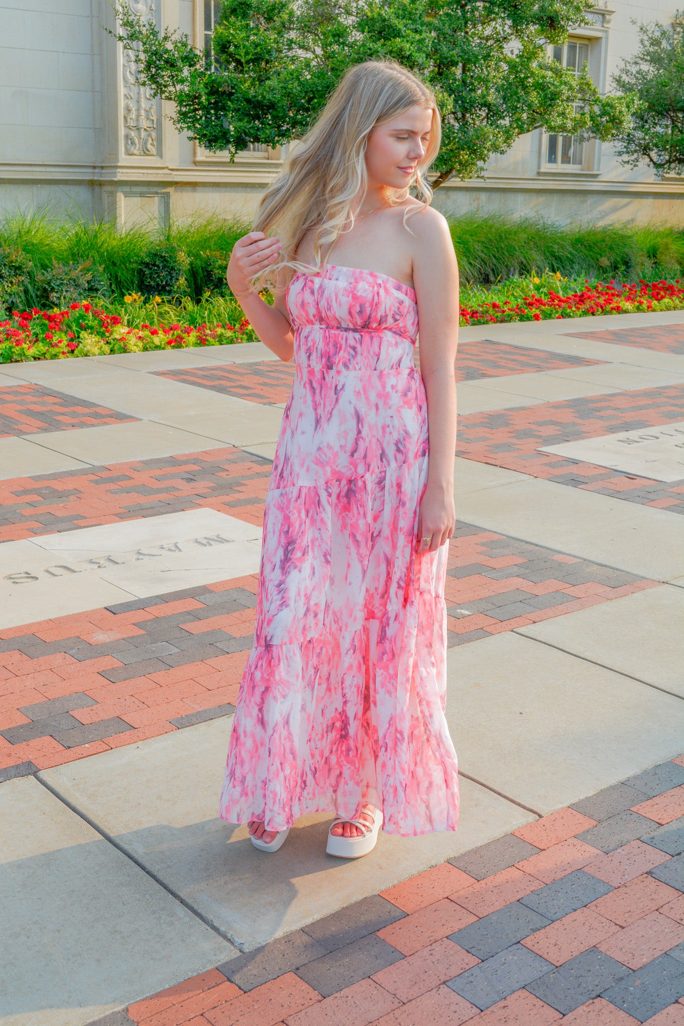 MULTICOLOR PRINT SLEEVELESS MAXI DRESS WITH FLOWY SKIRT AND OPEN BACK